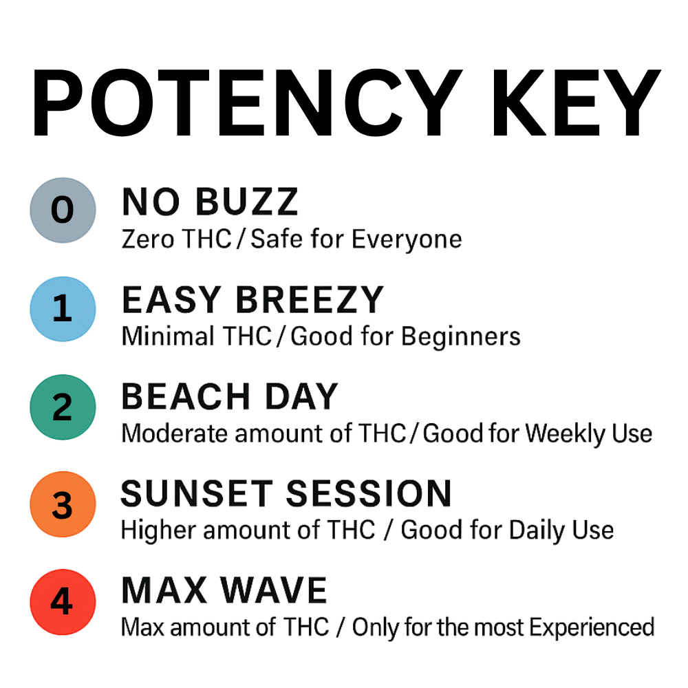 Every Snowbird Cannabis product comes with a clearly marked Potency Meter, so you can instantly see the THC level before you buy. Whether you’re looking for a light, beginner-friendly buzz or a wave-riding experience for seasoned pros, our color-coded system makes it easy to choose the right product for your desired vibe.