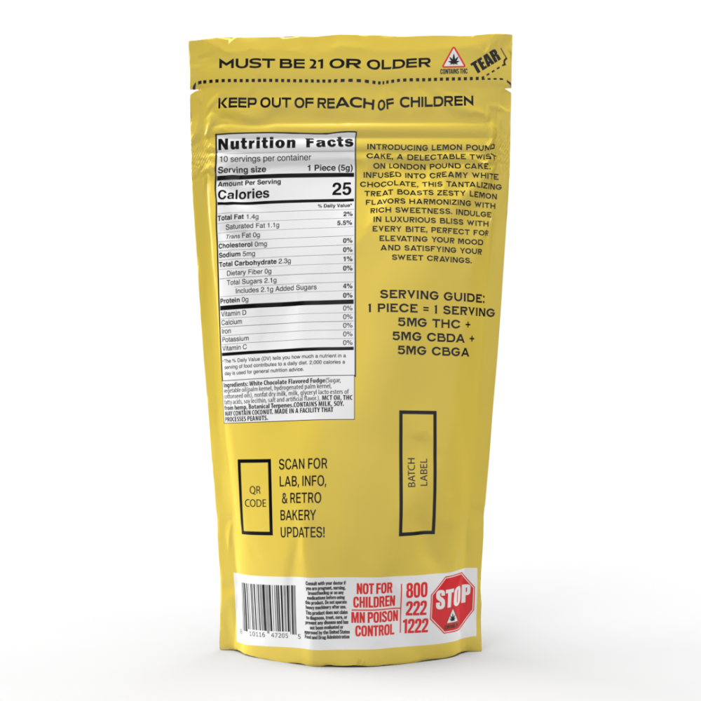 Lemon Pound Cake White Chocolate Bar - Full Spectrum50mg Δ9-THC + 50mg CBDA + 50mg CBGA